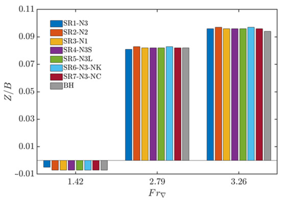 Comparison of the sinkage of CFD results for SRs hulls with base hulls.