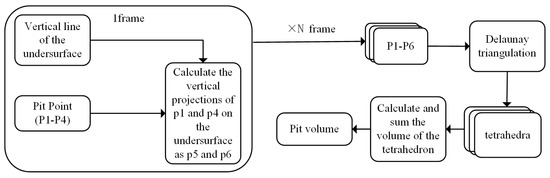 Flowchart for calculation of pit volume using Delaunay triangulation method.