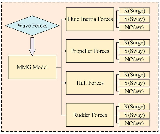 In summary, the three-degree-of-freedom MMG model has a high degree of nonlinearity and is suitable for ship course control research. The relationship between this model and the wave force model is shown in Figure 2 below.
