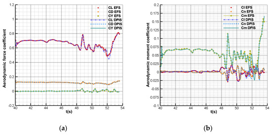 Comparison of (a) force coefficient and (b) moment coefficient during the landing process of a carrier-based aircraft.