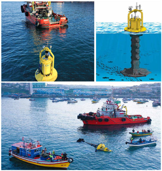- Cortés, J.; Lucero, F.; Suarez, L.; Escauriaza, C.; Navarrete, S.A.; Tampier, G.; Cifuentes, C.; Cienfuegos, R.; Manriquez, D.; Parragué, B.; et al. Open Sea Lab: An integrated Coastal Ocean Ob-servatory Powered by Wave Energy. J. Mar. Sci. Eng. 2022, 10, 1249. [Google Scholar] [CrossRef]