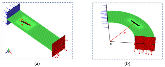 Fluid domain of the AUV, the blue arrow indicates the inlet flow direction, and the red arrow indicates the outlet flow direction: (a) Rectangular fluid domain; (b) Annular fluid domain. The blue arrow indicates the inlet flow direction, while the red arrow indicates the outlet flow direction.