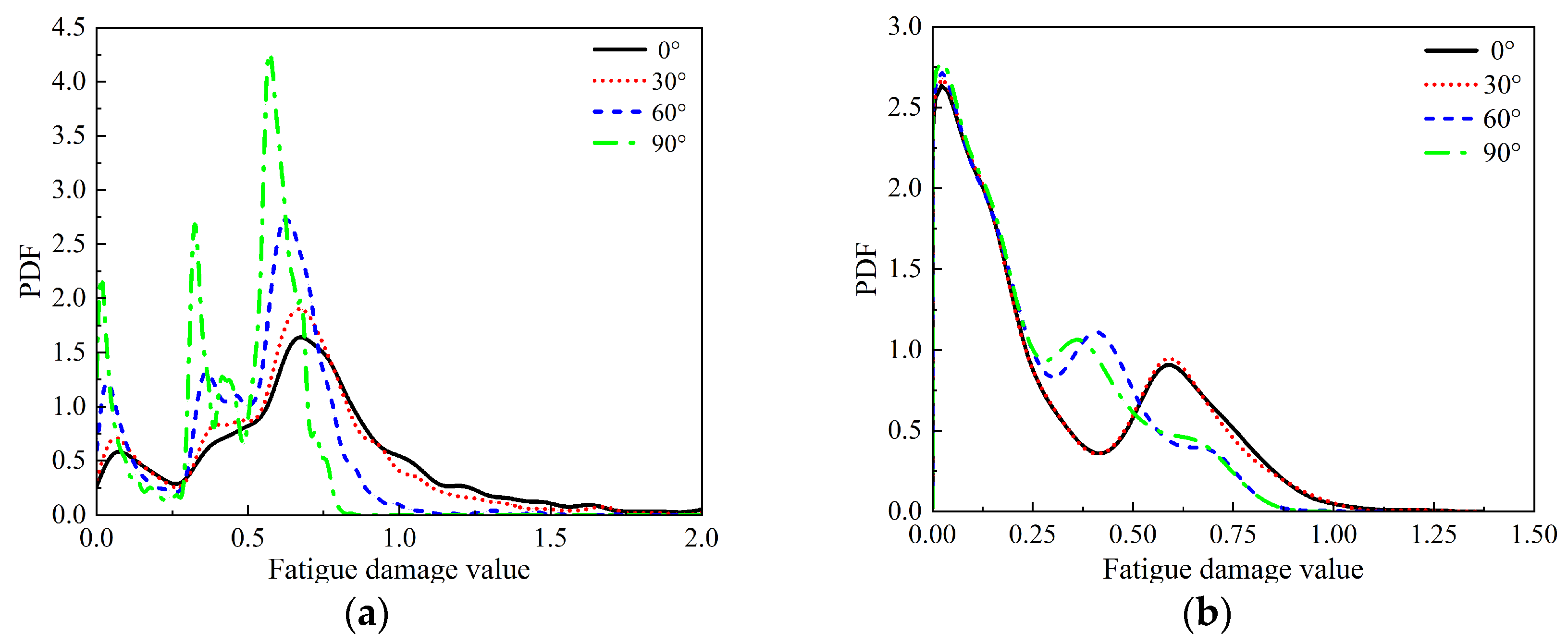 3.2. Fatigue Damage Analysis of FOWTs Under Combined Wind–Wave Excitation