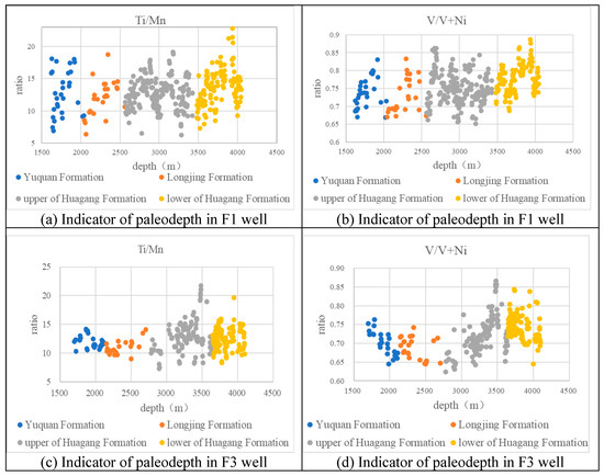 According to the regional paleo-water depth reconstruction, the lower Huagang Formation exhibits an average water depth of 23 m, whereas the upper Huagang Formation demonstrates an average water depth of 12 m. Both formations represent terrestrial shallow sedimentary environments [25]. This perspective is substantiated by analyzing geochemical indices obtained from recent drilling activities in the Y-area.