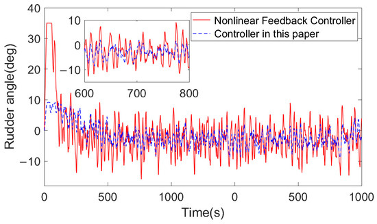 Figure 7. Simulation results of the controller rudder angle based on the controller mentioned under the Nomoto model and this paper.