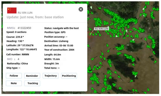 To evaluate the proposed localization algorithm, MATLAB R2019b simulations were conducted to compare the performance of four approaches: DV-Hop, CBAT clustering, CBAT_without_DBNR clustering, and Cen-Agg clustering. To mitigate the impact of random errors, each simulation was repeated 50 times, and the average results were used as the final outcomes. The performance of the four algorithms was evaluated based on three key metrics: localization coverage, localization error, and average energy consumption. The vessel location data used in the simulations were sourced from the http://www.ships66.com/ website, as shown in Figure 7. Specifically, the positions of 50 vessels were selected within the longitude range of E– E and the latitude range of N– N. A cubic region measuring 500 m × 500 m × 500 m was defined within this area, where 200 sensor nodes were randomly deployed. All nodes in the network were assumed to be stationary. The simulations were conducted by varying the communication range of the nodes and the parameter used in circle center calculations. The detailed simulation parameters are presented in Table 1.