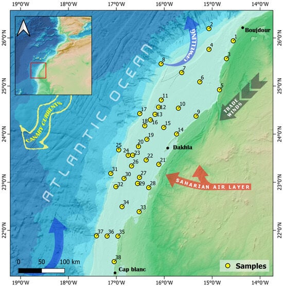 Nait-Hammou, H.; El Khalidi, K.; Khalfaoui, O.; Makaoui, A.; Chierici, M.; Jamal, C.; Idrissi, M.; Zourarah, B. Sediment Provenance and Distribution on the Northwest African Continental Shelf. J. Mar. Sci. Eng. 2025, 13, 537. https://doi.org/10.3390/jmse13030537