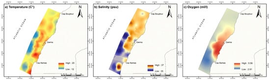 - Refk, R. Synthèse Des Résultats Des Travaux Océanographiques Effectués Dans Les Eaux Atlantiques Marocaines Durant La Période 1947–1980; Technical Report; Institut National de Recherche Halieutique (INRH): Casablanca, Morocco, 1985. [Google Scholar]