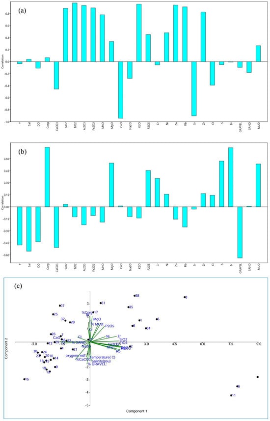 5.1. Correlations Between Variables and Between Surface Samples Using Normalized Principal Component Analysis (PCA)