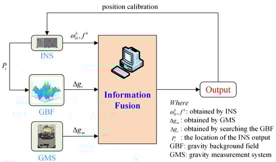 Navigation and positioning serve as crucial guarantees for underwater vehicles to accomplish designated missions and are essential prerequisites for underwater formation coordination []. Common underwater navigation and positioning methods primarily include: (1) velocity integration between the Doppler Velocity Log (DVL) and Inertial Navigation System (INS) for suppressing INS errors; (2) positioning and INS calibration through underwater acoustic positioning systems; and (3) geophysics-aided inertial navigation, among others [,,]. The inertial navigation system, characterized by complete autonomy, passivity, and high short-term accuracy while providing comprehensive navigation parameters, generally serves as a foundation for underwater vehicle navigation. This is typically implemented through an INS-based integrated navigation scheme supplemented by auxiliary navigation methods. Among these, the Gravity-Aided Inertial Navigation System (GAINS) represents a typical passive navigation modality. Its gravity data acquisition requires neither signal transmission nor reception, endowing it with advantages, including all-weather capabilities, high autonomy, strong concealment, superior precision, and anti-interference performance. Consequently, the GAINS has emerged as a vital research direction for autonomous underwater vehicle navigation [].