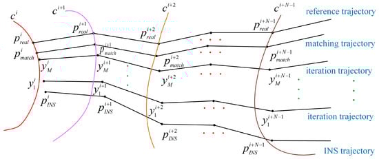 Step 5: Assign the estimated trajectory sequence to the INS sequence , repeat steps 2~4 until the convergence criteria are met and the final matching track is .