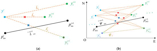 A heading drift threshold is established based on the INS accuracy level. By comparing the magnitude of and , the algorithm evaluates whether the adjacent contour points satisfy the heading constraint. Specifically, a contour point at epoch is retained only if it satisfies: