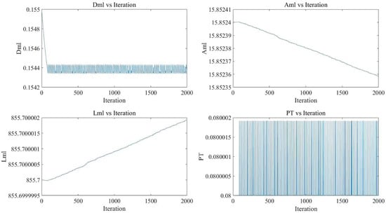 The combined approach of two optimization techniques, namely the Genetic Algorithm and the Gradient Algorithm, is employed to generate the optimal input, x = (Dml, Aml, Lml, PTml), based on the penalty objective function. This combined method searches for the global and local optimal solutions of the objective function step by step. The Genetic Algorithm, which is developed from evolutionary biology (including aspects such as heredity, variation, and Darwin’s principle of selection), is among the most widely utilized methods for finding the optimal solution in prediction or pattern matching [49]. The Gradient method makes use of the gradients of a function to search for the optimal design within the given design space.