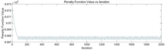 Based on the objective function given in Equation (10) and the constraints given in Table 6, a newly defined objective function is proposed, as shown in Equation (12), to consider the constraints as penalty functions [33], with a magnification factor of 107 being adopted: