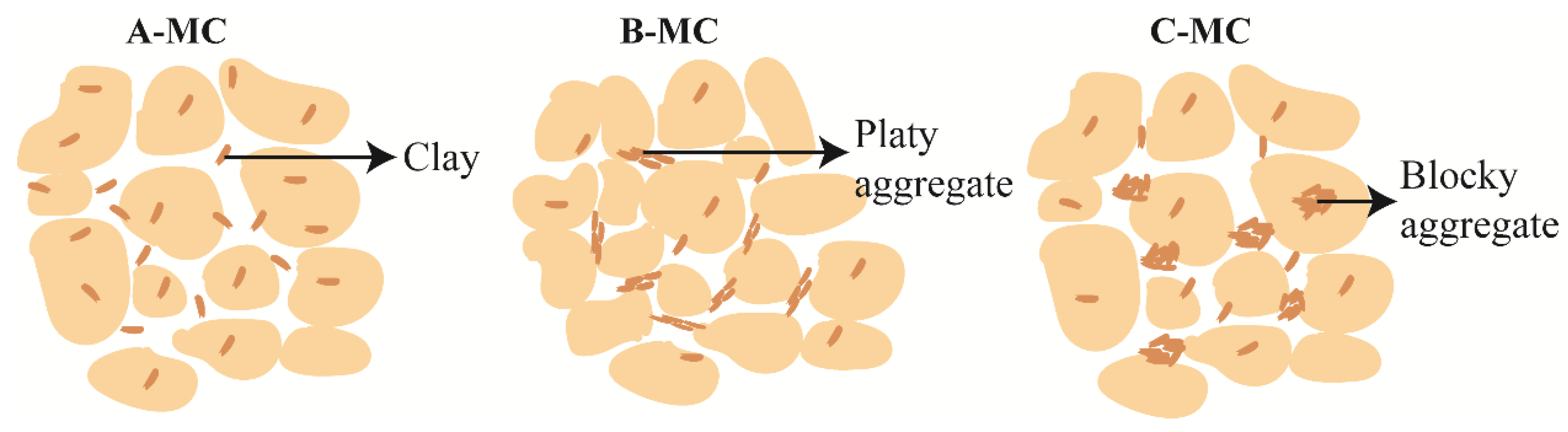 - Wang, H.; Qian, H.; Gao, Y.; Li, Y. Classification and physical characteristics of bound water in loess and its main clay minerals. Eng. Geol. 2020, 265, 105394. [Google Scholar] [CrossRef]