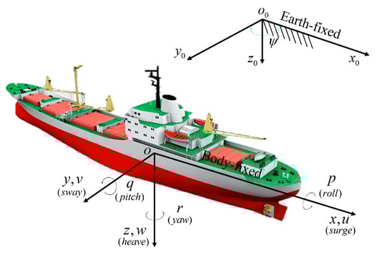 The motion of the vessel is modeled using a 3-DoF hydrodynamic model, as shown in Figure 2, with the kinematics and kinetics formulations represented as: