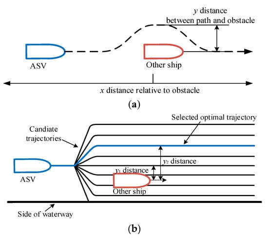 Planning is a multi-scale constraint problem, typically applied to large-scale scenarios, treating the object of research as a particle with no dynamic properties. Vessel behavior planning [13] relates to vessel navigation, consisting of behavior, task, and motion planning [14]. However, the navigation of waterway channels presents difficulties in terms of motion planning due to the constrained space available and the presence of other vessels driven by humans. Collisions between ships are a severe danger to maritime safety, and particular care should be taken with the ship’s operation in narrow channels to avoid accidents, substantial economic losses, and environmental destruction [3]. Furthermore, it is important to note that an accident has the potential to result in insignificant economic ramifications due to the subsequent disruption of key transportation routes.