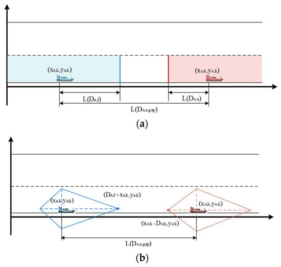 The variables and are the threshold values used to make the encounter choice. By calculating the along-track distance in real time, the system can continuously monitor the traffic situation and adapt the vessel’s behavior to ensure safe separation.