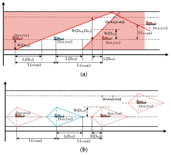 | lateral safety distances between the original target preceding, adjacent preceding, and adjacent tailing vessels | |