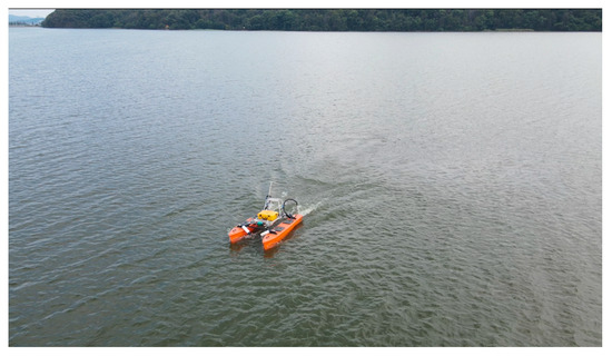 - Wang, W.; Gheneti, B.; Mateos, L.A.; Duarte, F.; Ratti, C.; Rus, D. Roboat: An autonomous surface vehicle for urban waterways. In Proceedings of the 2019 IEEE/RSJ International Conference on Intelligent Robots and Systems (IROS), Macau, China, 3–8 November 2019; IEEE: Piscataway, NJ, USA, 2019; pp. 6340–6347. [Google Scholar]