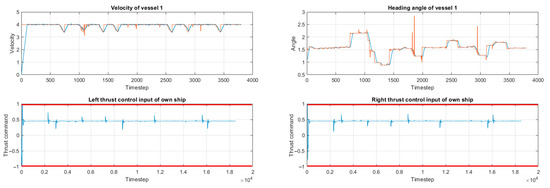 Despite the promising results, this study has several limitations. First, the experimental evaluations were conducted in simulated environments under controlled conditions, which did not fully capture dynamic factors such as moving vessels, fluctuating environmental conditions (e.g., wind and waves), sensor noise, and model inaccuracies. The limited obstacle configuration and specific waterway scenarios may restrict the generalizability of the findings to more diverse maritime settings. Furthermore, the observed oscillations in velocity and heading during high-density traffic indicate a trade-off between safety and energy efficiency that warrants further optimization. Future research should focus on integrating robust optimization techniques, incorporating additional dynamic environmental factors, and validating the framework under a broader range of realistic conditions.