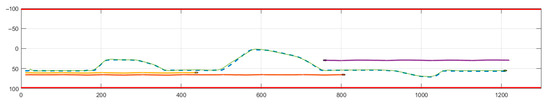 where is the th candidate trajectory’s cost function. The cost of moving away from the center point is denoted by . For each possible trajectory, there is a corresponding cost, denoted by . The cost of a collision with a static obstacle is denoted by , while the cost of a collision with a moving obstacle is denoted by . The most cost-effective candidate is selected as the optimal path without obstructions. By minimizing this cost function, the planner selects the safest and most efficient trajectory, thereby reducing the likelihood of accidents.