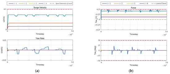 The cost function embedded in chance-constrained model predictive control evaluates various factors, such as sailing efficiency, collision risk, and maneuver feasibility, ensuring that the resulting path is not only secure but also minimizes the time spent navigating hazardous areas. The system’s design prioritizes safety by adjusting the vessel’s speed, trajectory, and behavior according to the risk levels identified during the decision-making process. This dynamic response allows the NMSV to adapt to fluctuating traffic conditions and avoid conflicts with other vessels.