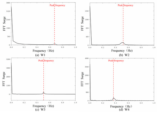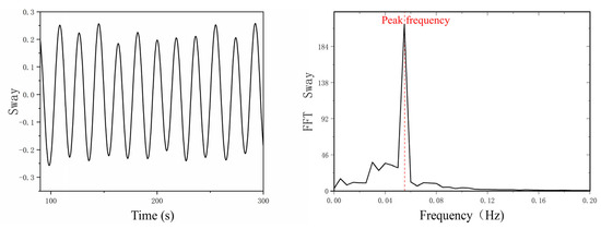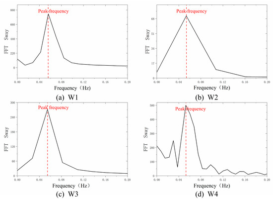 Fast Fourier transform was performed on the transverse motion time history curves of four conditions to obtain the response frequency (Figure 18). It was found that the transverse motion response frequency was close to the natural frequency of the platform.