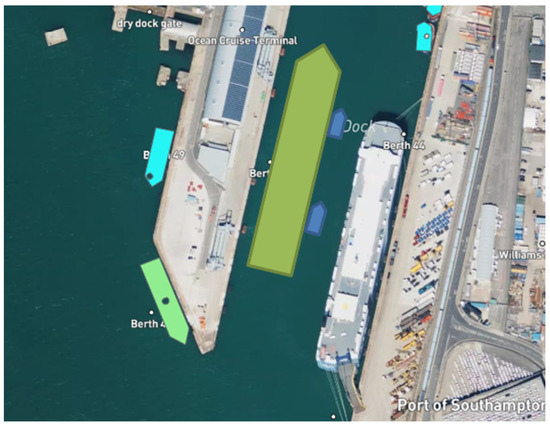 Berthing of a ship at Southampton Ocean dock with another ship moored at the opposite quay of the dock [23].