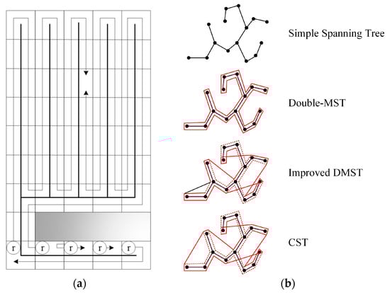 - Xu, R.; Yao, S.; Gouhe, W.; Zhao, Y.; Huang, S. A Spanning Tree Algorithm with Adaptive Pruning with Low Redundancy Coverage Rate. Comput. Ind. Eng. 2023, 186, 109745. [Google Scholar] [CrossRef]