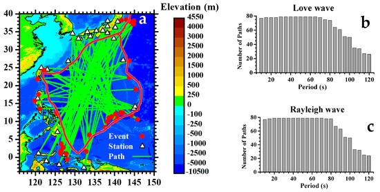 - Isse, T.; Shiobara, H.; Montagner, J.-P.; Sugioka, H.; Ito, A.; Shito, A.; Kanazawa, T.; Yoshizawa, K. Anisotropic structures of the upper mantle beneath the northern Philippine Sea region from Rayleigh and Love wave tomography. Phys. Earth Planet. Inter. 2010, 183, 33–43. [Google Scholar] [CrossRef]