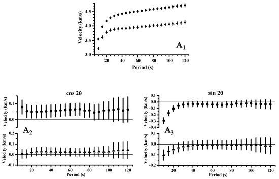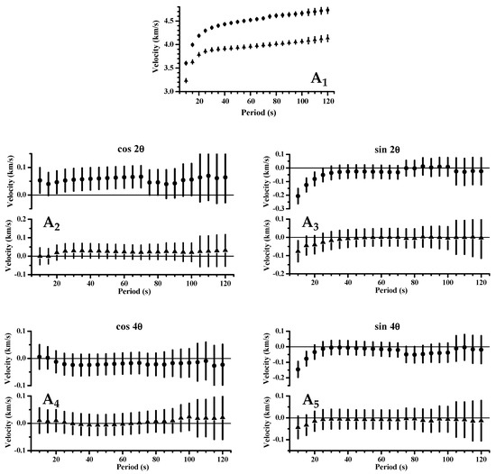 - Corchete, V. Review of the methodology for the inversion of surface-wave phase velocities in a slightly anisotropic medium. Comput. Geosci. 2012, 41, 56–63. [Google Scholar] [CrossRef]