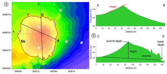 - Grosse, P.; van Wyk de Vries, B.; Euillades, P.A.; Kervyn, M.; Petrinovic, I.A. Systematic morphometric characterization of volcanic edifices using digital elevation models. Geomorphology 2012, 136, 114–131. [Google Scholar] [CrossRef]