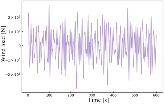 Time-history diagram of simulated wind loads.