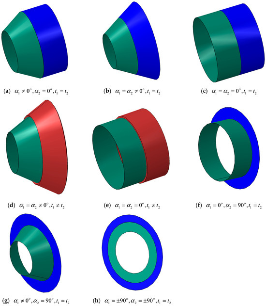 - Zhang, Y.; Shi, D.; He, D. Vibration characteristics of a laminated composite double-cylindrical shell system coupled with a variable number of annular plates. Materials 2022, 15, 4246. [Google Scholar] [CrossRef]