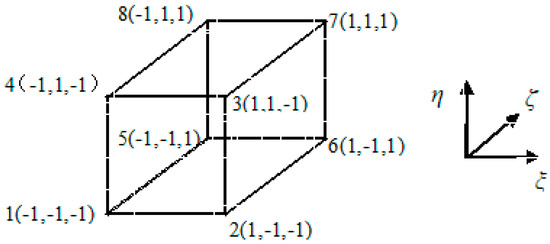 The flow field is generally discrete when using eight-node hexahedral elements (Figure 3), whose shape function is as follows: