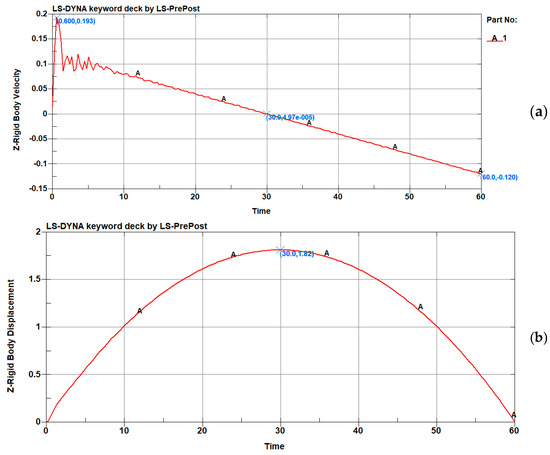 Simulation of velocity (a) and displacement (b) in the z direction of a submarine crossing a vortex center under the influence of type 1 vortex.