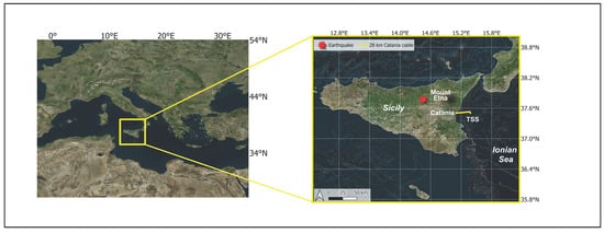 The purpose of this work is to demonstrate the potential of DAS technology for marine environment seismic and acoustic detection. To achieve this, we used an Alcatel Submarine Network OptoDAS interrogator unit to interrogate an existing underwater optical fiber network originally installed for deep–sea scientific research and neutrino detection as part of the NEMO (NEutrino Mediterranean Observatory) project [22]. By leveraging the Istituto Nazionale di Fisica Nucleare–Laboratori Nazionali del Sud (INFN–LNS) seabed infrastructure located in the Gulf of Catania [23], Eastern Sicily, we address the challenges of marine monitoring innovatively. This region in the Western Ionian Sea, off the eastern coast of Sicily, was chosen for this study due to its exceptional combination of geophysical, biological and anthropogenic features. It is one of the most seismically active areas in the Mediterranean, located near the converging African and Eurasian tectonic plates. Some of the most outstanding geophysical features in this region include Mount Etna, Europe’s most active volcano [24], which significantly impacts the area’s seismicity [25]. Additionally, the Western Ionian Sea has intense maritime activity, leading to substantial vessel traffic [26]. The region is also recognized for its abundant marine biodiversity, particularly the presence of marine mammals, offering tremendous value for biological research and conservation efforts [27,28]. The interplay of active seismic zones, heavy maritime traffic and rich marine ecosystems creates a distinctive environment for acoustic studies, positioning the Ionian Sea as an ideal site for deploying DAS technology to monitor both natural and anthropogenic underwater acoustic signals.