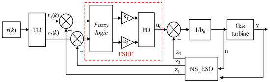 From Equations (13) and (14), it can be seen that traditional SEF is evolved from the PD controller. Compared to the LSEF with fixed gains, the NSEF improves the performance of the controller by adaptively adjusting the gain parameters. However, there are two main drawbacks in the NSEF. On the one hand, the large number of adjustable parameters significantly increases the difficulty of tuning, which restricts its application in practical engineering scenarios. On the other hand, the equivalent proportional gain of the NSEF depends only on the error, and the equivalent derivative gain depends only on the derivative of the error. This one-dimensional adjustment method does not align with the speed response characteristics of the gas turbine.