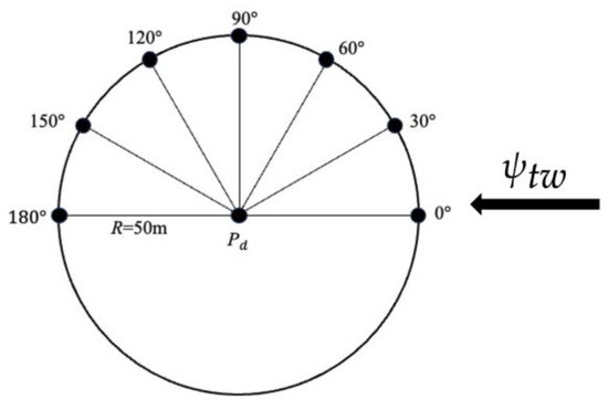 To initiate tracking, the waypoint closest to the initial position is identified as the first waypoint. When the distance between the sailboat’s current position and the first waypoint satisfies (where d is a normal number), the sailboat switches to track the next waypoint in a counterclockwise direction. This process is repeated for the remaining waypoints.