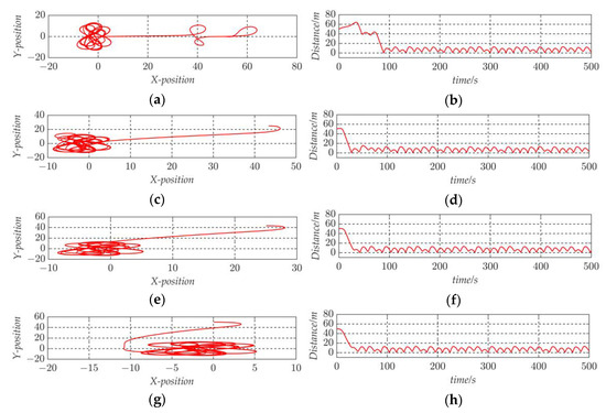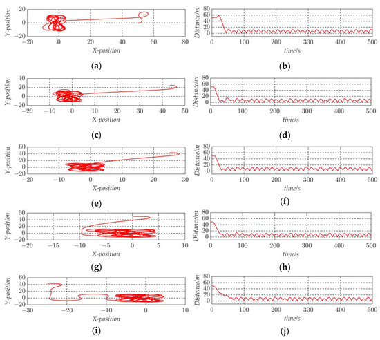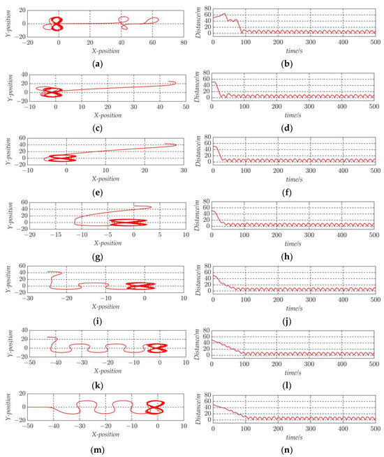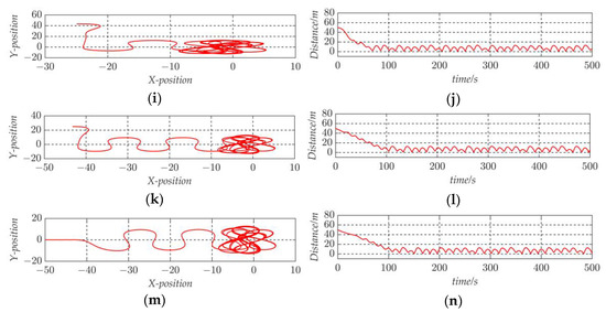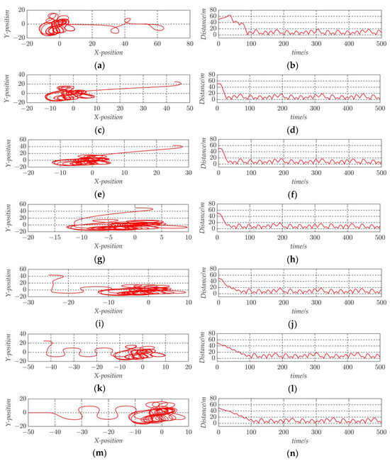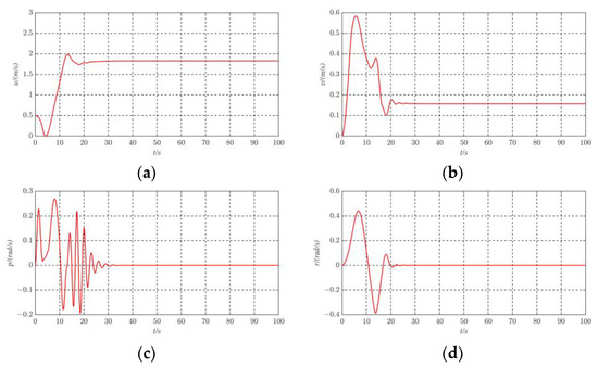Increasing generally speeds up the convergence of the longitudinal error, but it may lead to overly aggressive system responses. The value of affects the calculation of the control input, which in turn influences the smoothness of trajectory tracking. In practical adjustments, it is necessary to ensure both the convergence speed and the stability of the sailboat’s motion, as well as the smoothness of the trajectory. The appropriate combination of and is determined through multiple trials.
