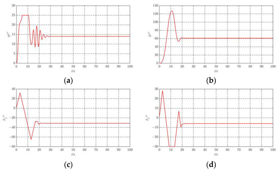 In NMPC, the control variable is the same as the feedback variable, which is , and the manipulated variable is . As this study aims to verify whether NMPC can be applied to sailboat control, in order to simplify the experiment, the mismatch between the prediction model and the actual model and the existing interference are not considered in this study. It is also assumed that all variables can be directly measured.