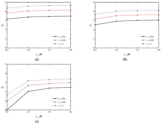 Variation of Nc with re, suc/γB and (a) ρB/suc = 1; (b) ρB/suc = 0.5; (c) ρB/suc = 0.