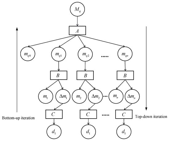 Figure 5 illustrates the factor graph model developed in this study, wherein component A represents the separation function, component B denotes the error correction function, and component C embodies the iterative function. The initial iterative value is represented as 0, which indicates the starting value of the distance information for iteration. Initially, an initialization procedure is conducted for all UUVs within the network that require localization. Once initialization is finalized, confidence information is exchanged among the UUVs. Considering the k-th iteration as a representative example, the process of information exchange between UUVs and function nodes is delineated as follows.