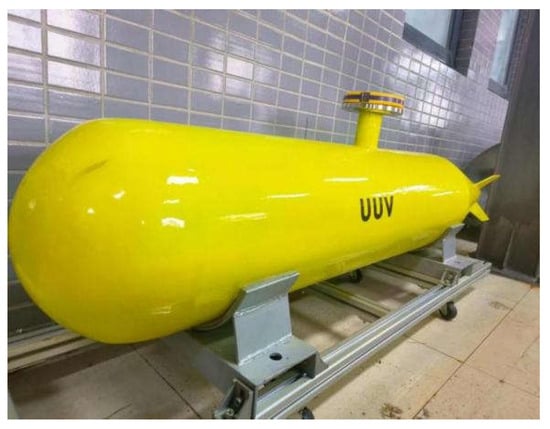 To validate the effectiveness of the unmanned underwater vehicle cluster navigation information geometric cooperative fusion positioning (UCDFP) method, this paper first designed the method and conducted pool experiments on a verification platform constructed in a laboratory. Figure 13 shows the actual experimental environment. The field experiments were performed in Qixiang Lake (34.1378° N, 108.6594° E) at Northwestern Polytechnical University’s Chang’an Campus, with an effective testing area of 120 m × 80 m and an average depth of 10 m (max 15 m). The unmanned underwater vehicles are shown in Figure 14. In the experiment, the unmanned underwater vehicles used were equipped with various sensors, including sonar and inertial measurement units (IMUs), among others, and underwater base station positioning points were set up in the pool. These sensors and base stations provided a wealth of multi-source information. The fusion of this information aims to improve positioning accuracy and reliability. Furthermore, the specific parameter information is shown in Table 5.