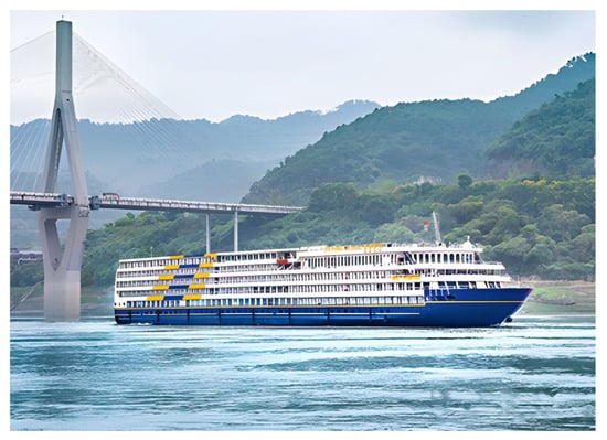 In this study, the five-star Yangtze River cruise ship “Victoria Sabrina” was chosen as the research object (Figure 2). The ship adopts the electric propulsion mode of a DC network, which exhibits a low noise level, low vibrations, and good comfort [27].