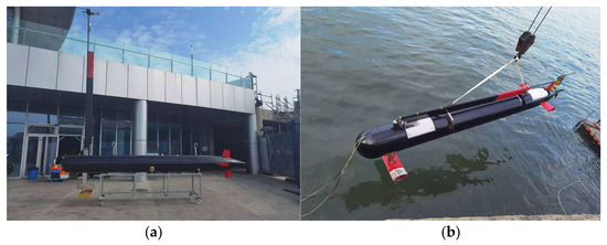 The SSOP mentioned in this paper has been experimentally verified across several performance metrics, including maximum speed, navigation accuracy, maximum operating depth, continuous operation time, and terrain exploration capability. In this study, an SSOP was used for underwater motion control experiments. The experimental site is located in the southern offshore waters of the National Marine Comprehensive Test Site (Weihai), as indicated by the positioning marker in Figure 8a. Figure 8b illustrates the motion process of the SSOP during the sea trial.