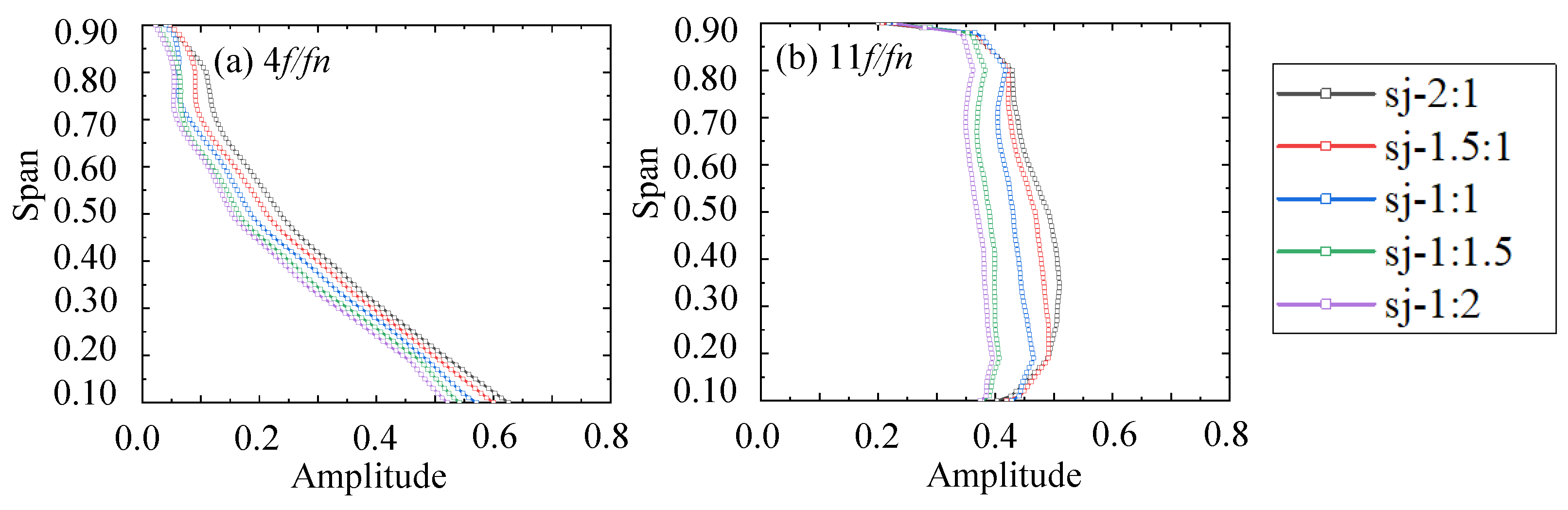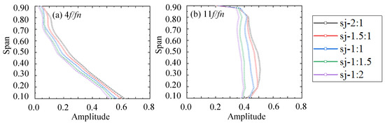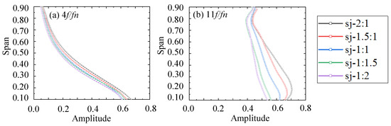 Key harmonic component distribution of axial velocity at the inlet of the second-stage stator: (a) 4th; (b) 11th.