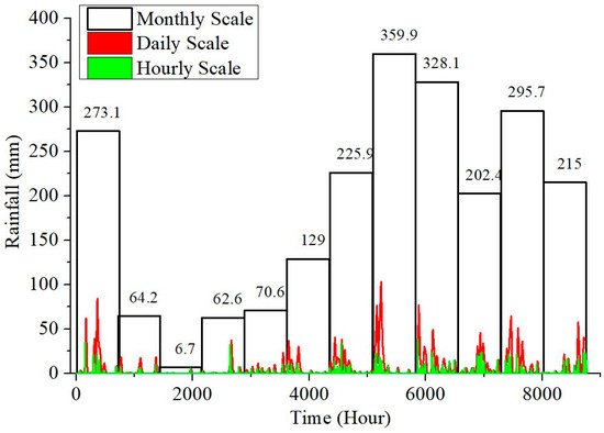 Precipitation observation data at the three time scales.