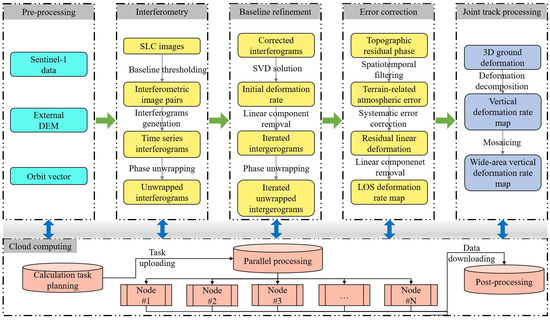 To address massive data volumes and computational demands, a cloud computing framework was deployed. All data were uploaded to cloud servers, where a data processing environment was established. Computational tasks were formulated on a scene-by-scene basis and uploaded to the cloud computing center. These tasks were then distributed to different computing nodes for parallel processing. Finally, the resultant data were downloaded locally for subsequent processing.